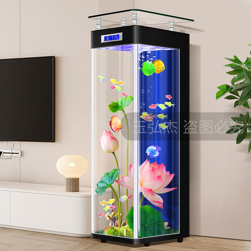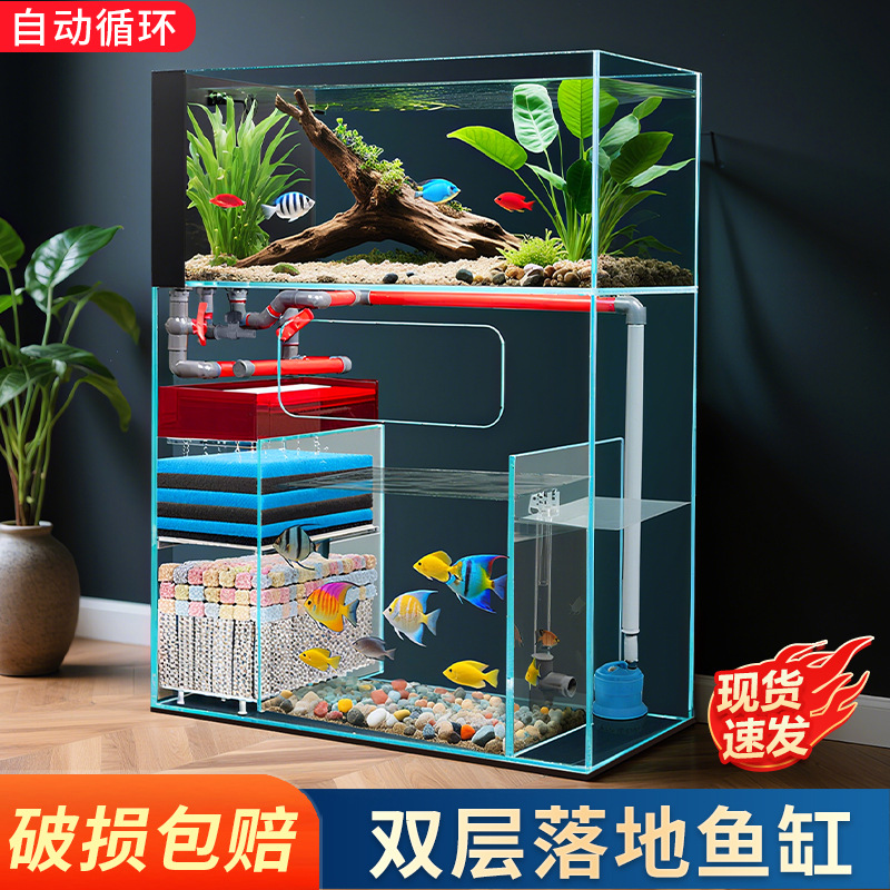 Filter dasar ekologi sirkulasi mandiri tangki ikan ruang tamu akuarium lengkap bebas air mewah lampu lantai besar dan sedang