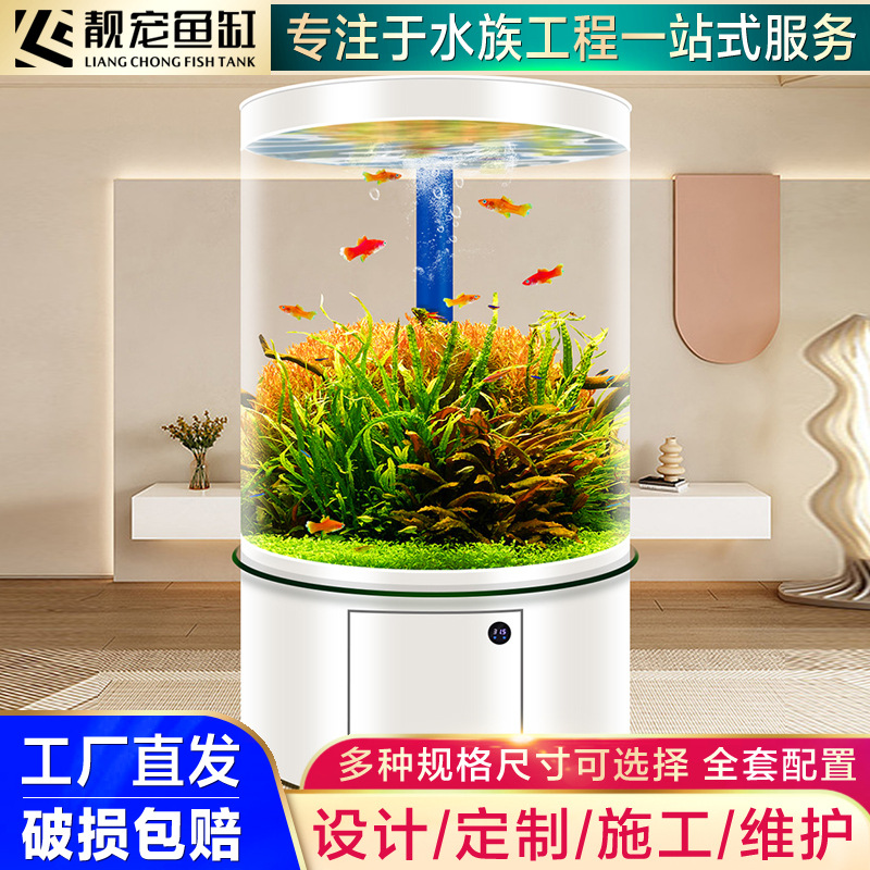 Tangki Ikan Ruang Tamu Silinder 2025 Model Baru Putaran Penuh Panas Membungkuk Terpadu Lantai Besar Ekologi Rumah Tangga Tanpa Ganti Air