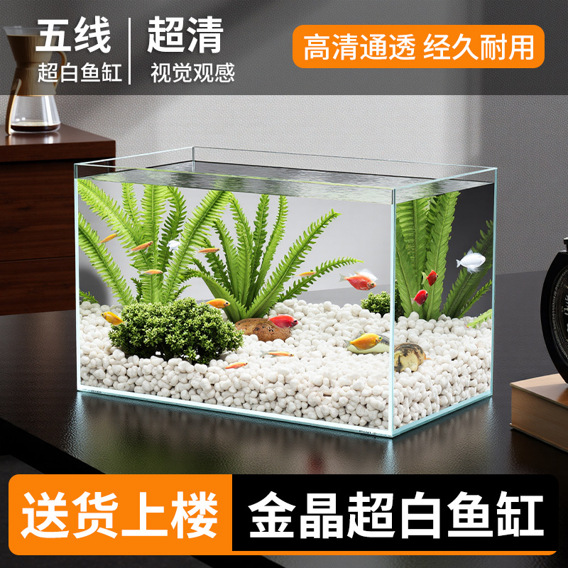 Tangki Ikan Kecil Ruang Tamu Siklus Ekologis Kaca Super Putih Tangki Ikan Emas Filter Akuarium Terintegrasi