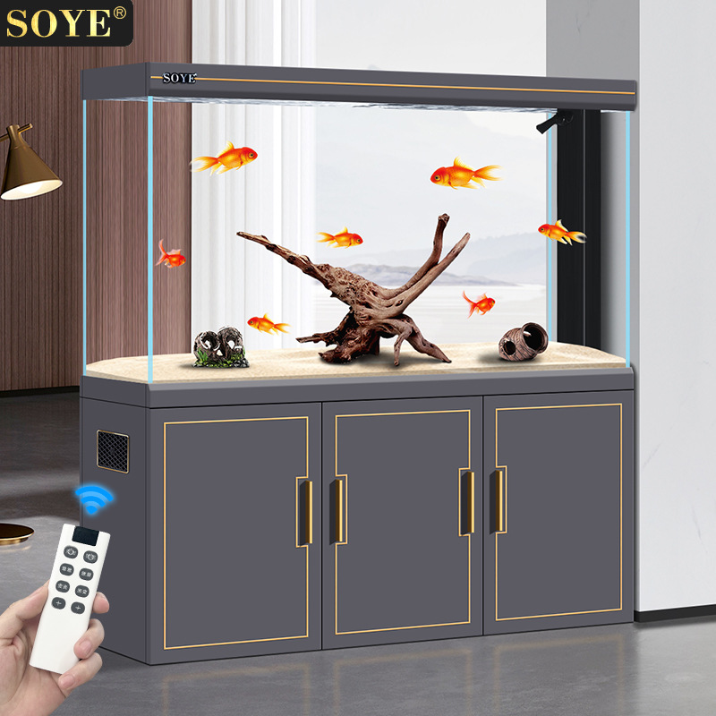 Tangki Ikan Kaca Transparan Tinggi Ekstra Tebal Tangki Ikan Ikan mas Kecil Tangki Ikan Kura-kura Meja Meja Kerja Tangki Ikan Rumah Tangga Tangki Air Pemandangan