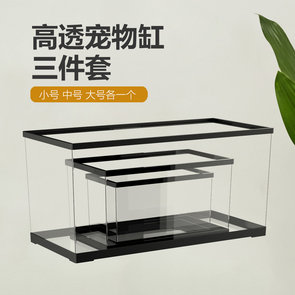 Nuomo kotak penyimpanan transparan plastik hewan peliharaan pemandangan makanan ramah lingkungan tangki ikan turtle Pot memanjat tangki kecil sedang dan besar tiga potong