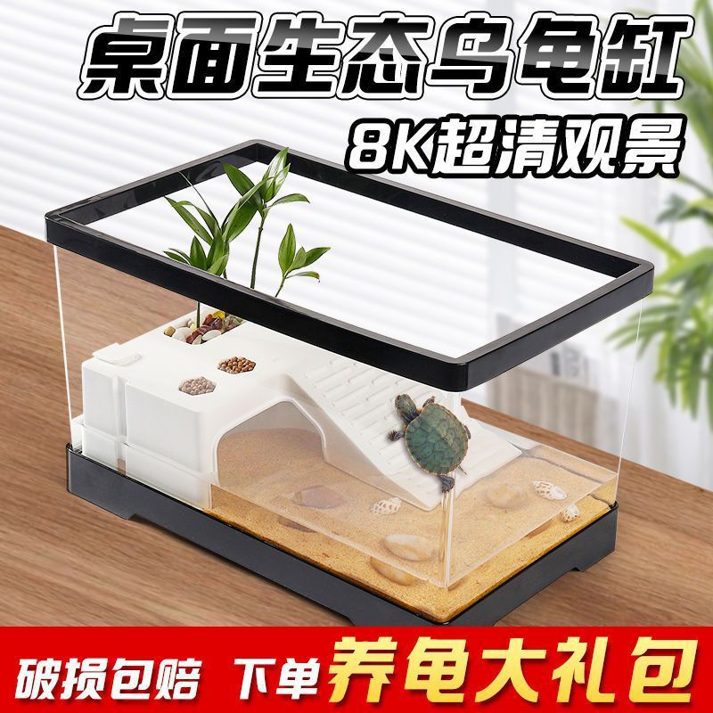 Bingkai terintegrasi transparan tangki kura-kura set lengkap Rumah Tangga ekologis penyu tangki bawah drainase lanskap tangki ikan kotak makan