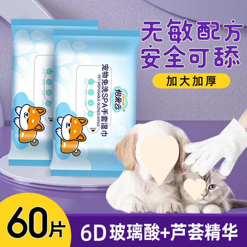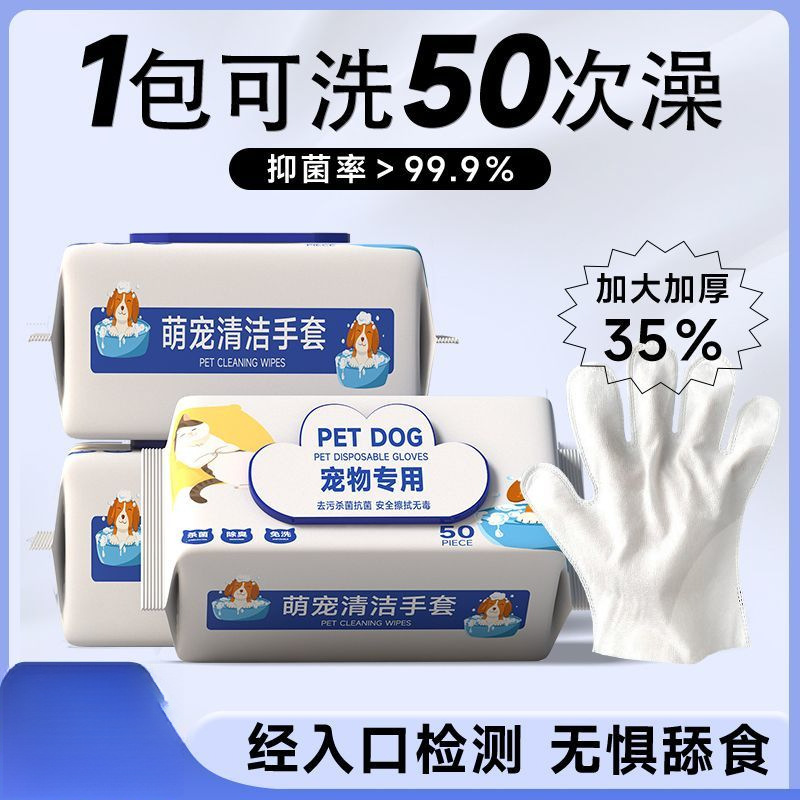 Sarung Tangan Hewan Peliharaan Tanpa Cuci Kucing Mandi Tisu Basahi Anjing Pembersih Cuci Bersih Sterilisasi Alat Penghilang Bau Rambut Langsung Pabrik