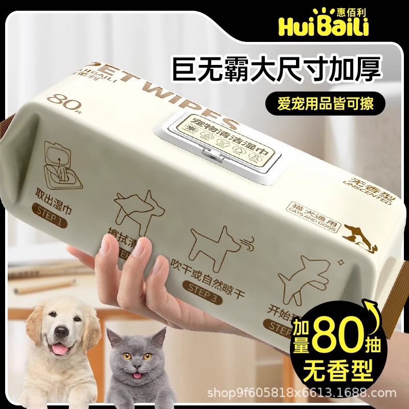 Huibaili tisu basah hewan peliharaan tisu basah khusus kucing anjing