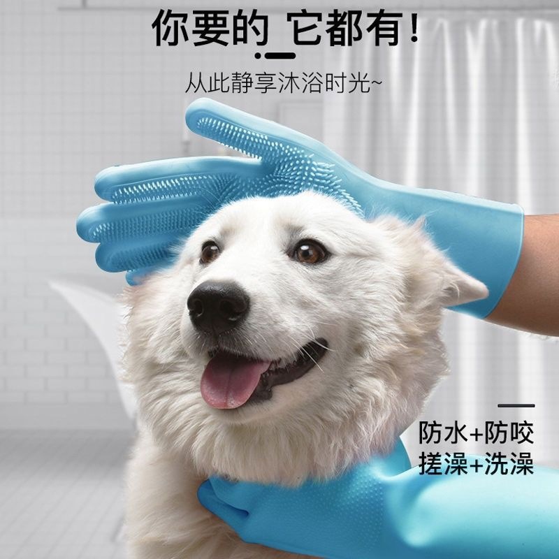 Hewan Peliharaan Anjing Kucing Alat Mandi Sarung Tangan Bulu Mengambang Dengan Sikat Pijat Anti Genggam Anti Gigitan Perlengkapan Mandi