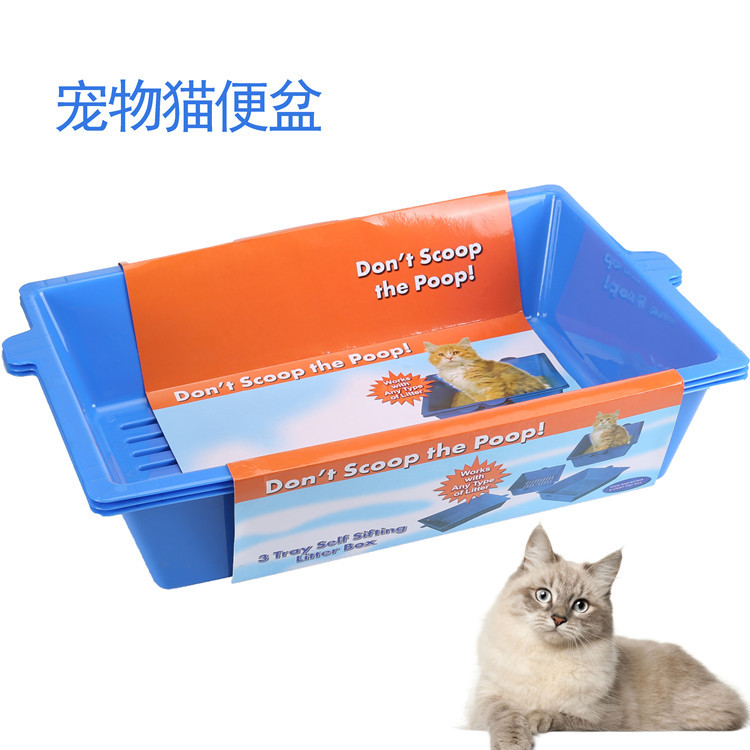 Kotak pasir kucing tiga paket, baki pasir kucing tiga-dalam-satu, pasir kucing praktis untuk penghilangan bau dan pembersihan di dalam ruangan, dirancang untuk mencegah bau dari kotoran.