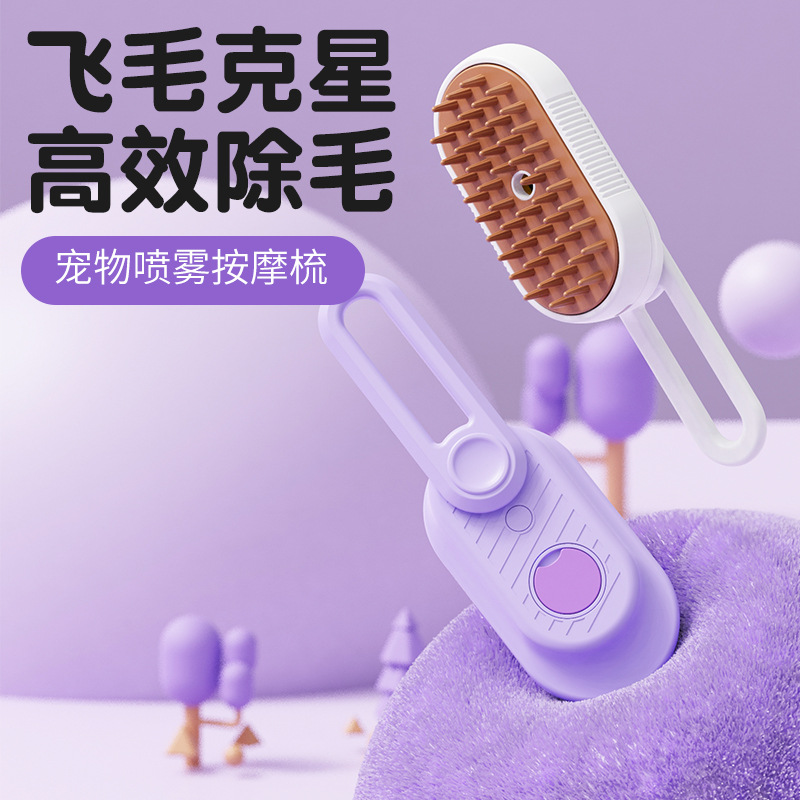 Sikat pijat semprot kucing dan anjing peliharaan, sikat penghilang bulu mandi mengambang putar satu klik semprotan uap lipat