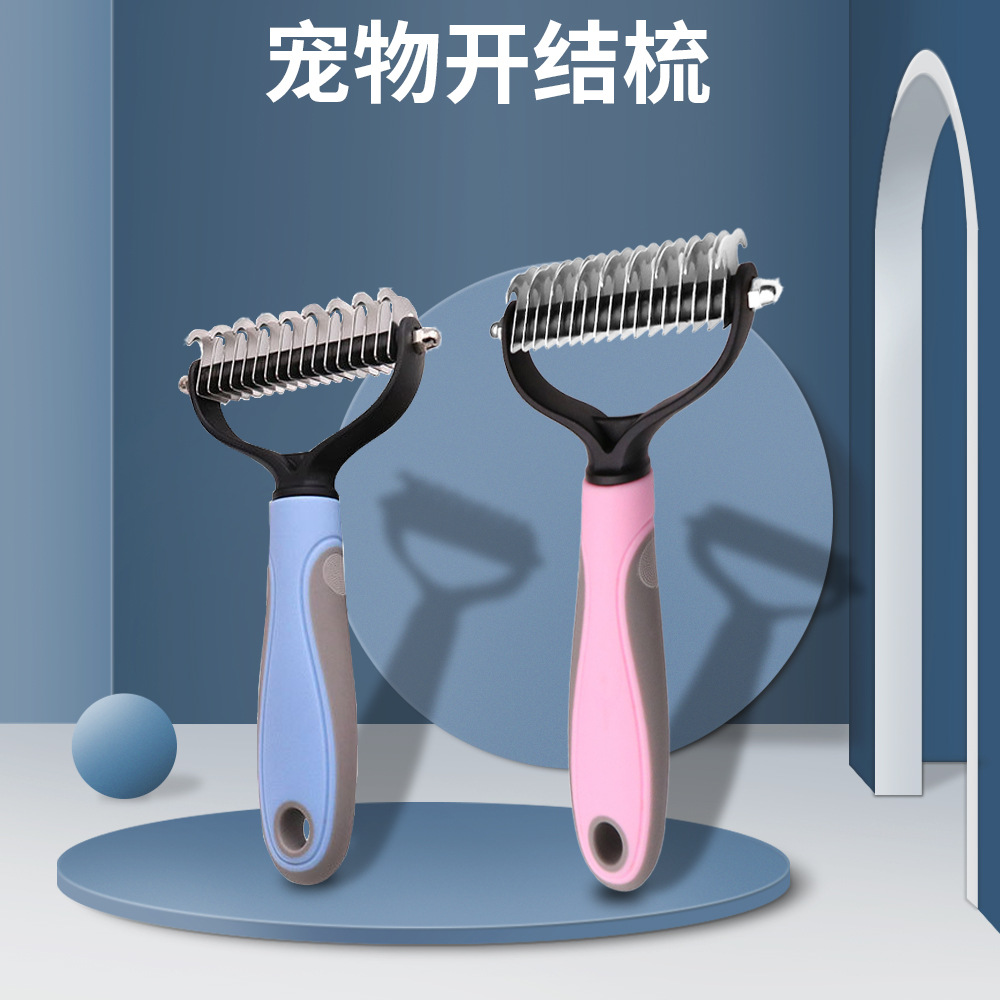 Cross-border sisir terbuka hewan peliharaan sisir rambut simpul terbuka lepas pasang sisir rambut hewan peliharaan kepala pisau stainless steel perlengkapan hewan peliharaan