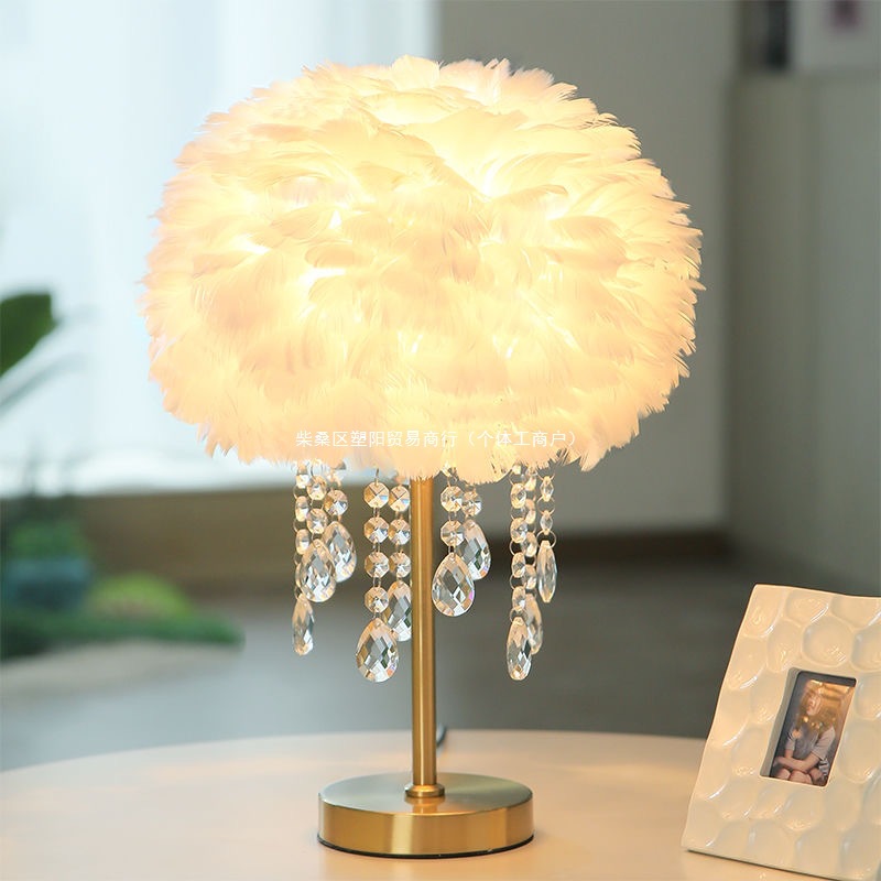 Lampu Meja Lampu Suasana Meja Kristal Kamar Tidur Lampu Kepala Tempat Tidur Bulu Pelindung Mata Mewah Ringan Lampu Meja Cahaya Ringan Ruang Tamu Latar Belakang Siaran Langsung