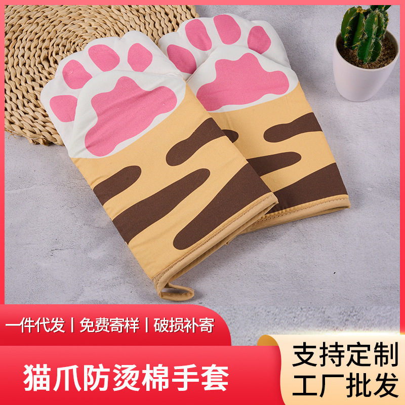 Sarung tangan oven anti panas, sarung tangan kucing lucu, Isolasi Panas, sarung tangan oven microwave, tebal, tahan suhu tinggi, Dapur, rumah tangga