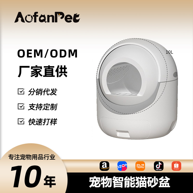 Kotak sampah kucing pintar lintas batas, kotak pembuangan kucing cerdas otomatis membersihkan deodoran toilet kucing tertutup penuh antipercikan