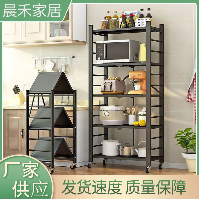Rak penyimpanan lipat, rak penyimpanan lantai dapur, rak oven microwave, rak bergerak rumah tangga