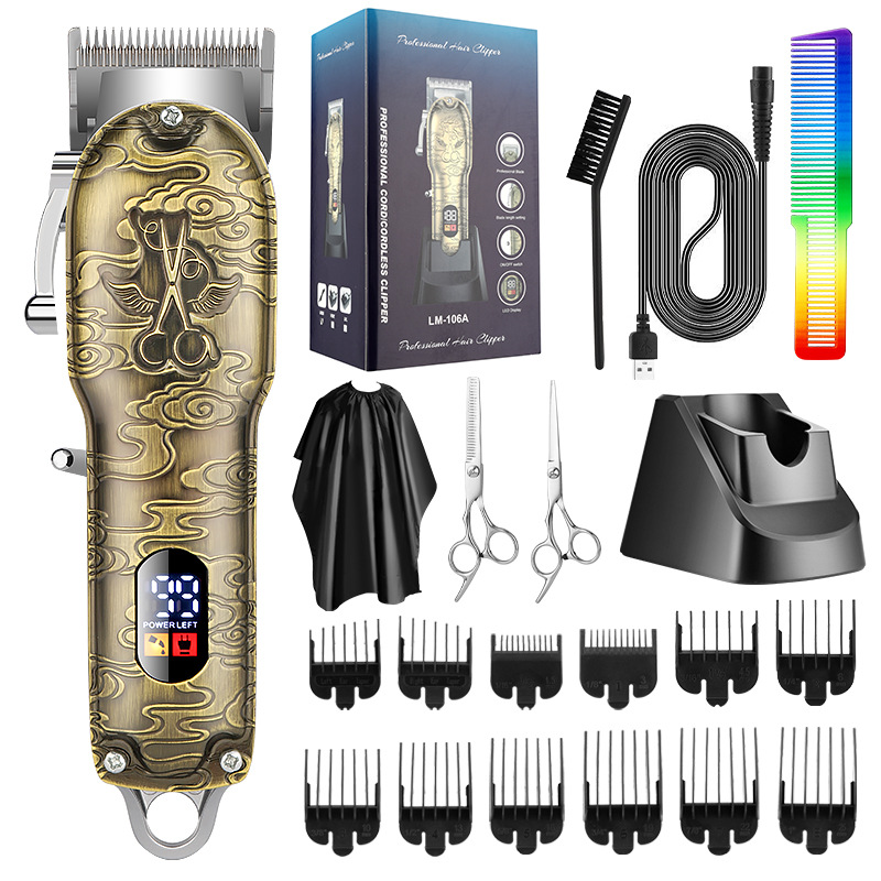 Setelan alat cukur elektrik pria, gunting rambut elektrik daya tinggi dengan tampilan digital LCD, vintage, pemotong rambut ukiran, alat pemotong multifungsi
