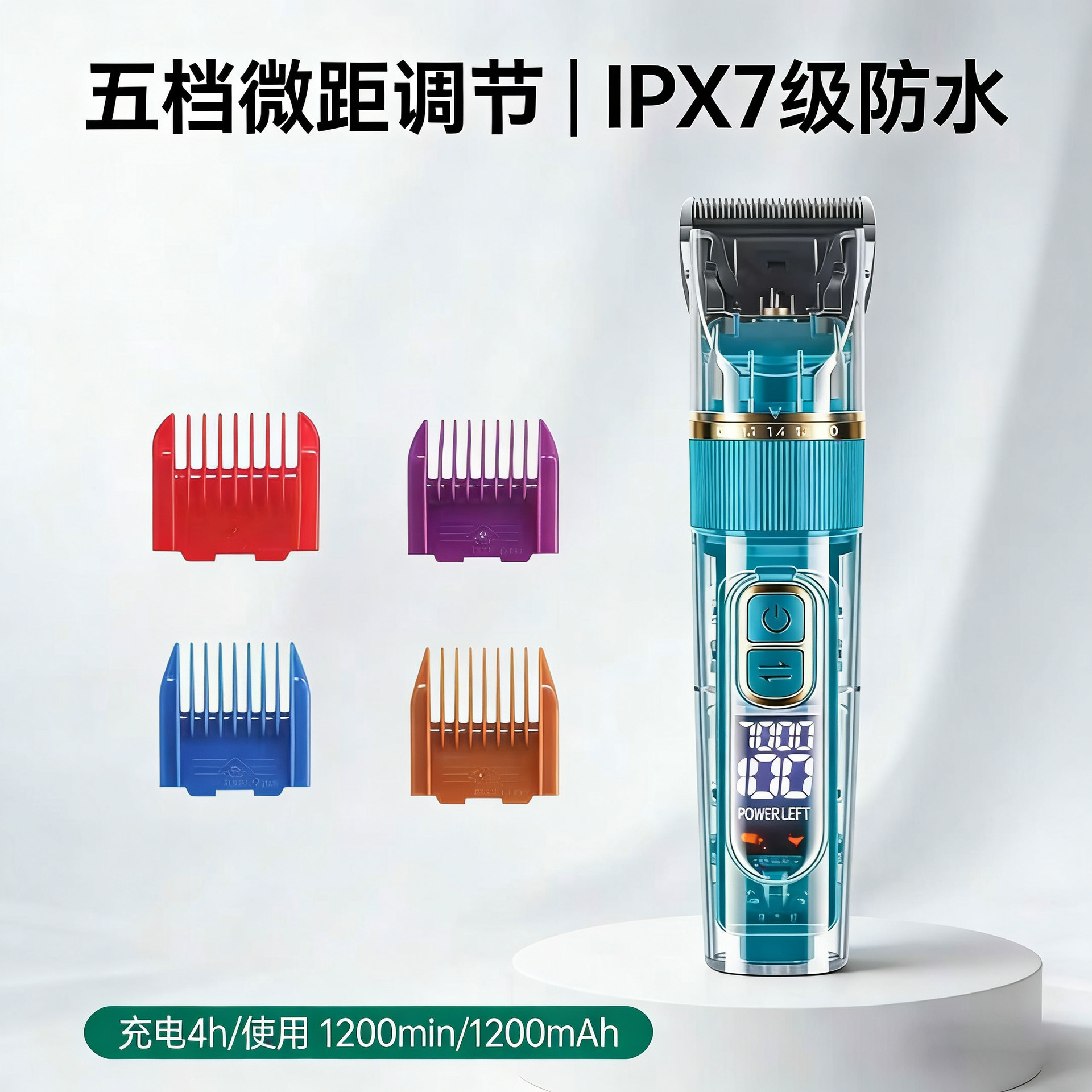 Alat pencukur rambut bayi dewasa anak-anak, kepala pemotong baja tahan karat sisir batas 4 blok tampilan digital dapat diisi ulang