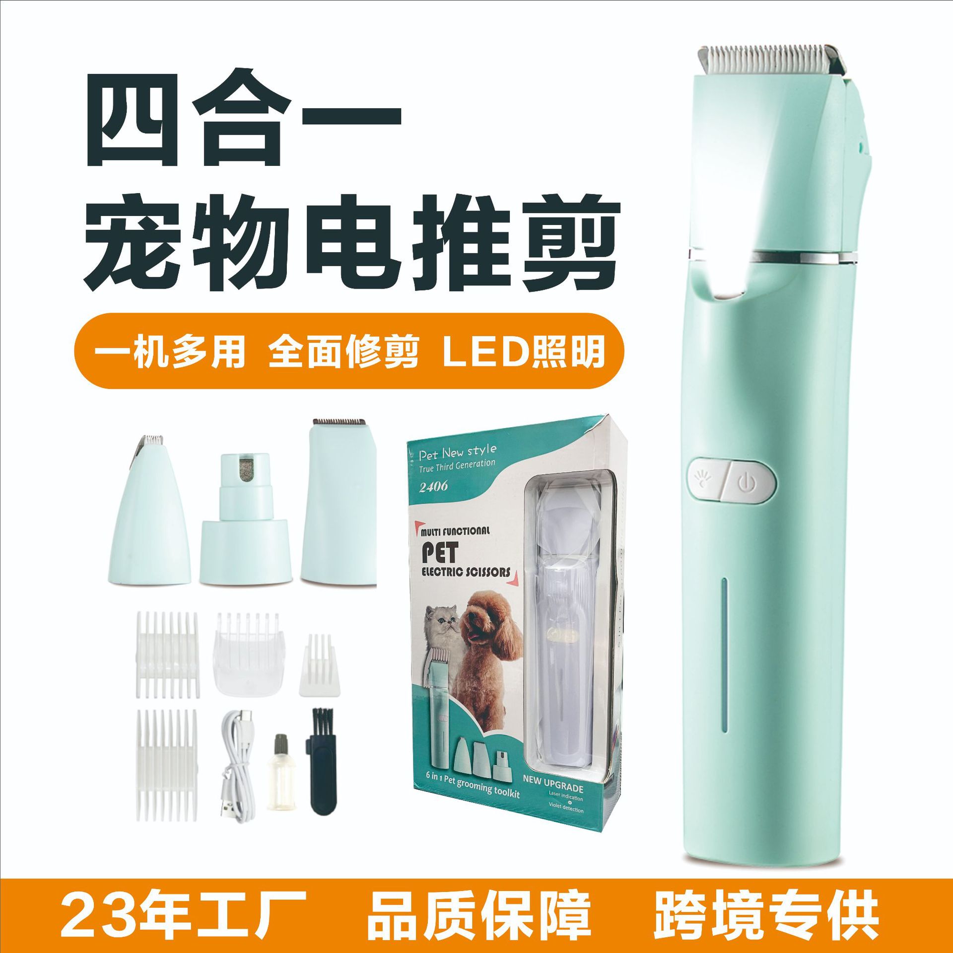Mesin Pemotong Hewan Peliharaan Khusus Lintas Batas Satu Alat Pencukur Rambut Empat Penggunaan Cukur Kaki Kecantikan Kucing dan Anjing Cukur Pemotong Geser Listrik Isi Ulang Grosir