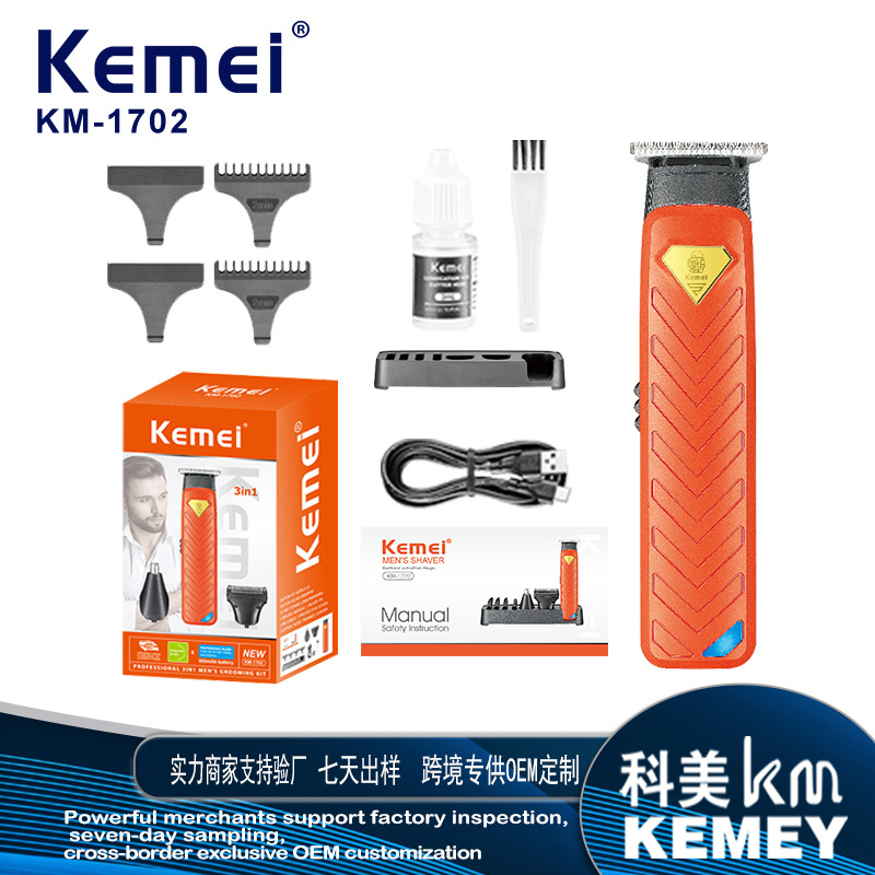 Kemei Kemei Ukiran Geser Listrik 2025 Set Tiga Dalam Model Baru KM-1702 Pemangkas Rambut Listrik