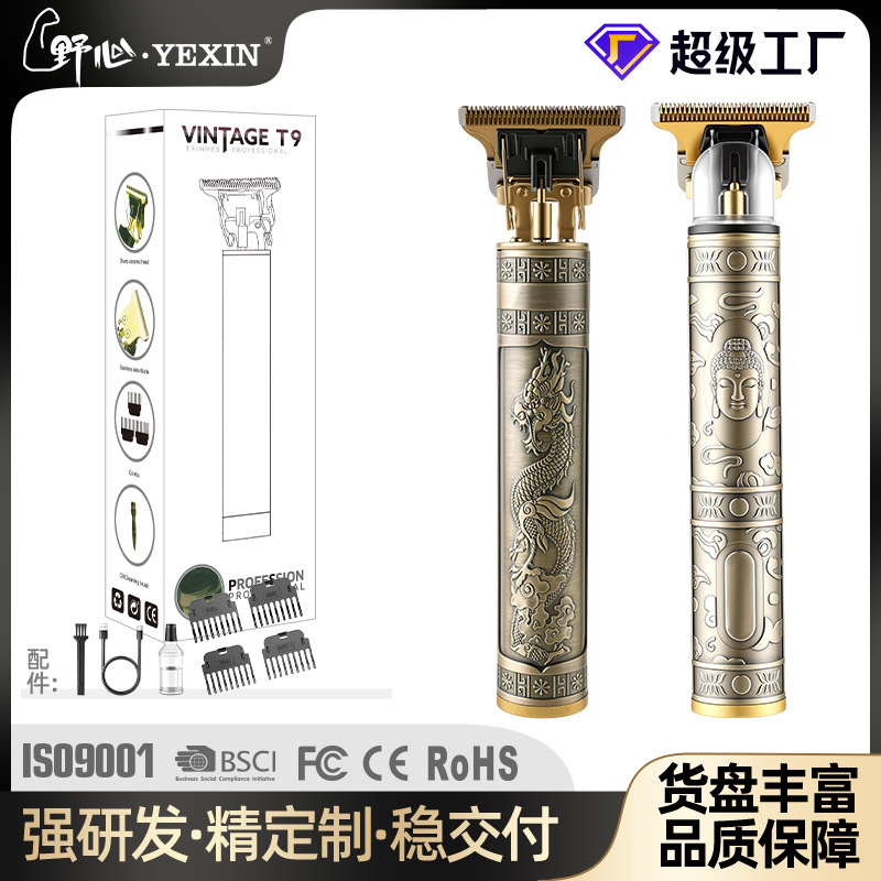 Pemotong Rambut Listrik Pria Retro Lintas Batas Kepala Pemotong Rambut Minyak Ukiran Pisau Cukur Kepala Bau Rambut Digital