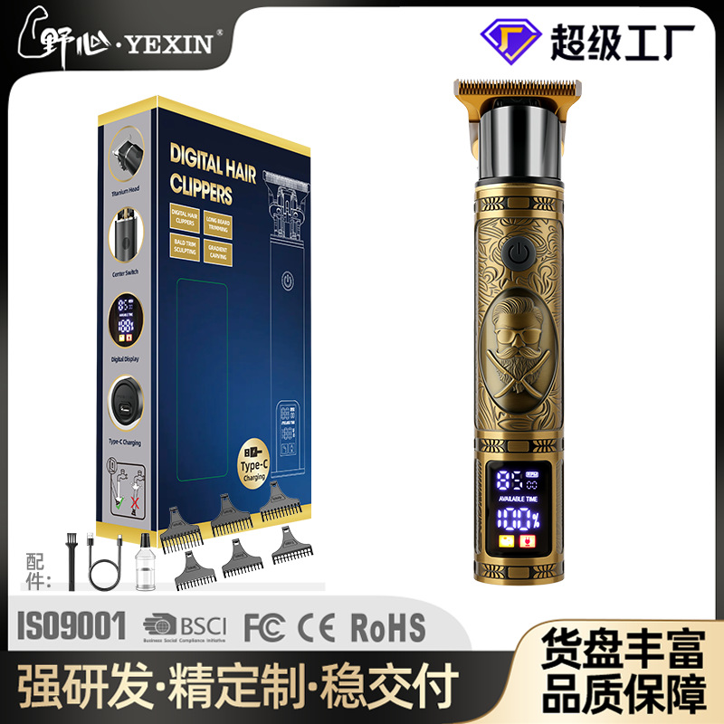 Alat pangkas rambut elektrik ukiran, kliper listrik rumah tangga, tampilan digital, kepala minyak, pencukur rambut elektrik, alat cuci