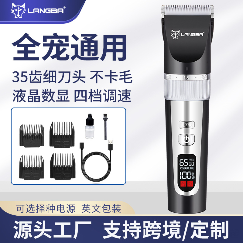Langba pabrik grosir alat cukur hewan peliharaan anjing gunting listrik Amazon LCD penjepit rambut listrik lintas batas penjepit rambut