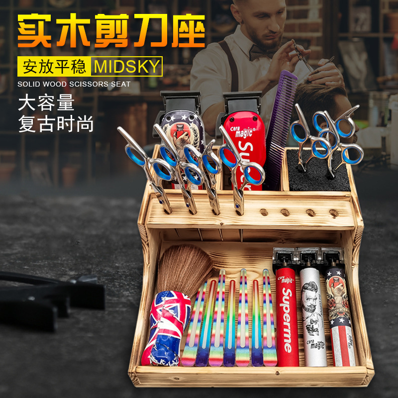 Kotak penyimpanan peralatan rambut kayu padat, kelas atas gunting listrik kapasitas besar pemegang gunting hewan peliharaan kreatif