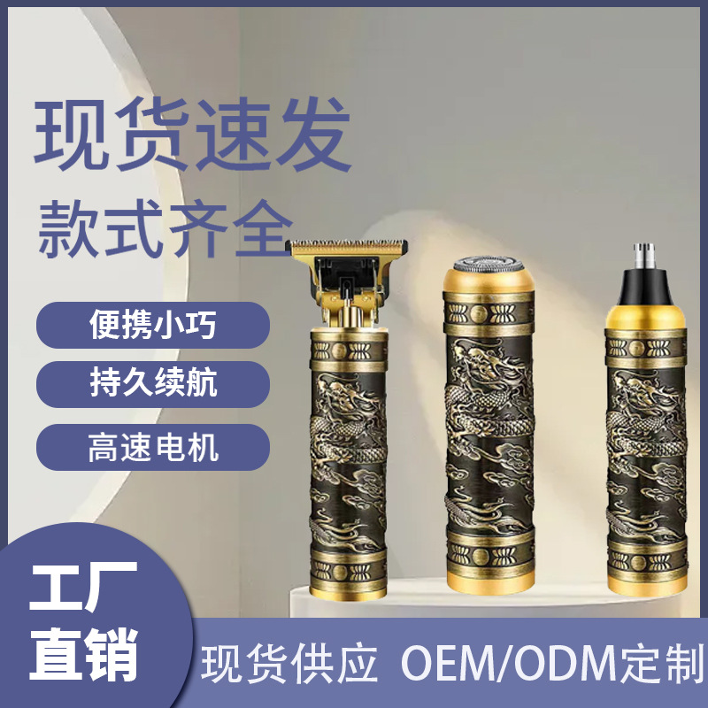 Cross-border alat cukur elektrik, gunting rambut hidung elektrik tiga dalam satu alat cukur rambut retro multifungsi kepala minyak ukiran rambut