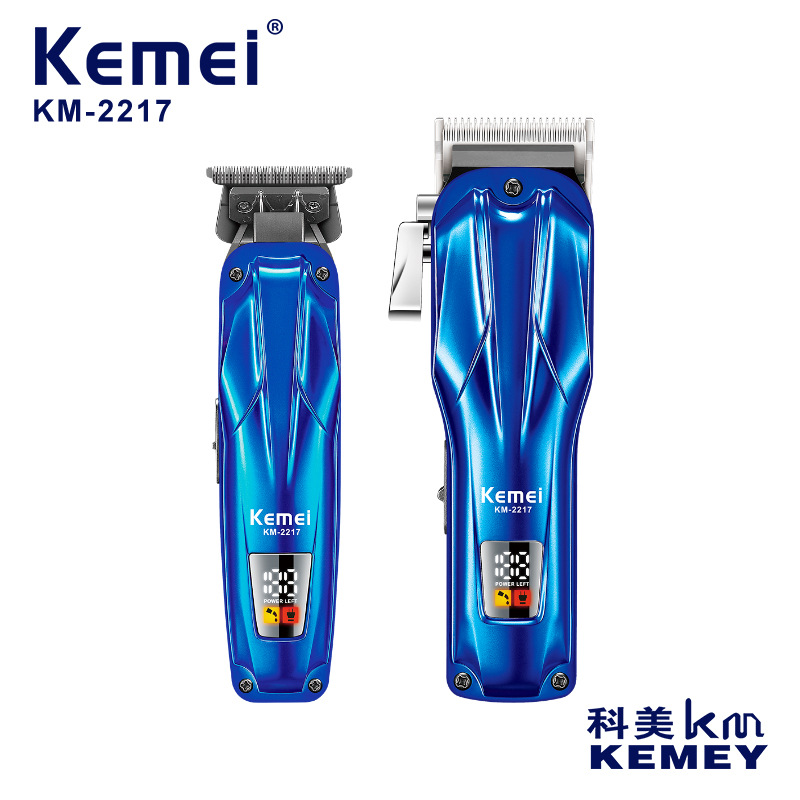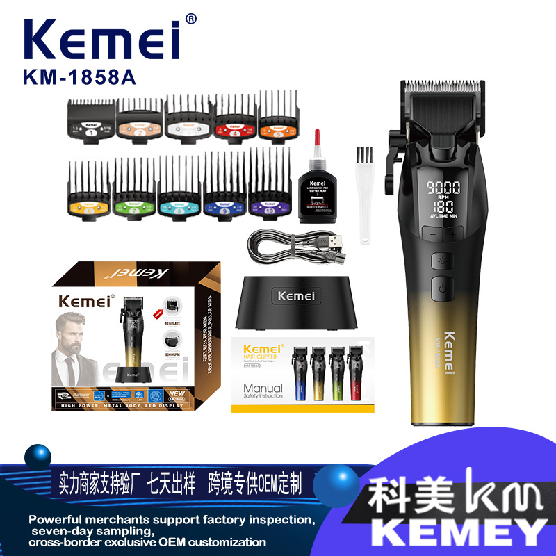 KEMEI gunting pangkas rambut elektrik, alat pemotong rambut elektrik profesional, pengisian cepat, tampilan digital LCD LED, gunting pangkas rambut elektrik daya tinggi