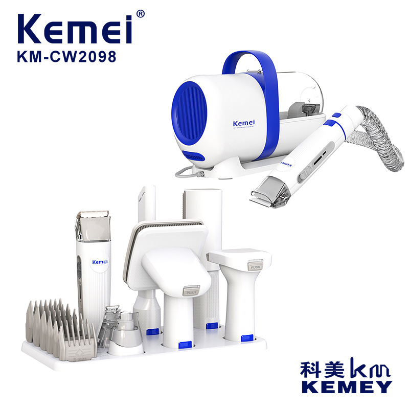 KEMEI setelan pangkas rambut hewan peliharaan, pencukur rambut anjing pengurang kebisingan bass, koleksi debu