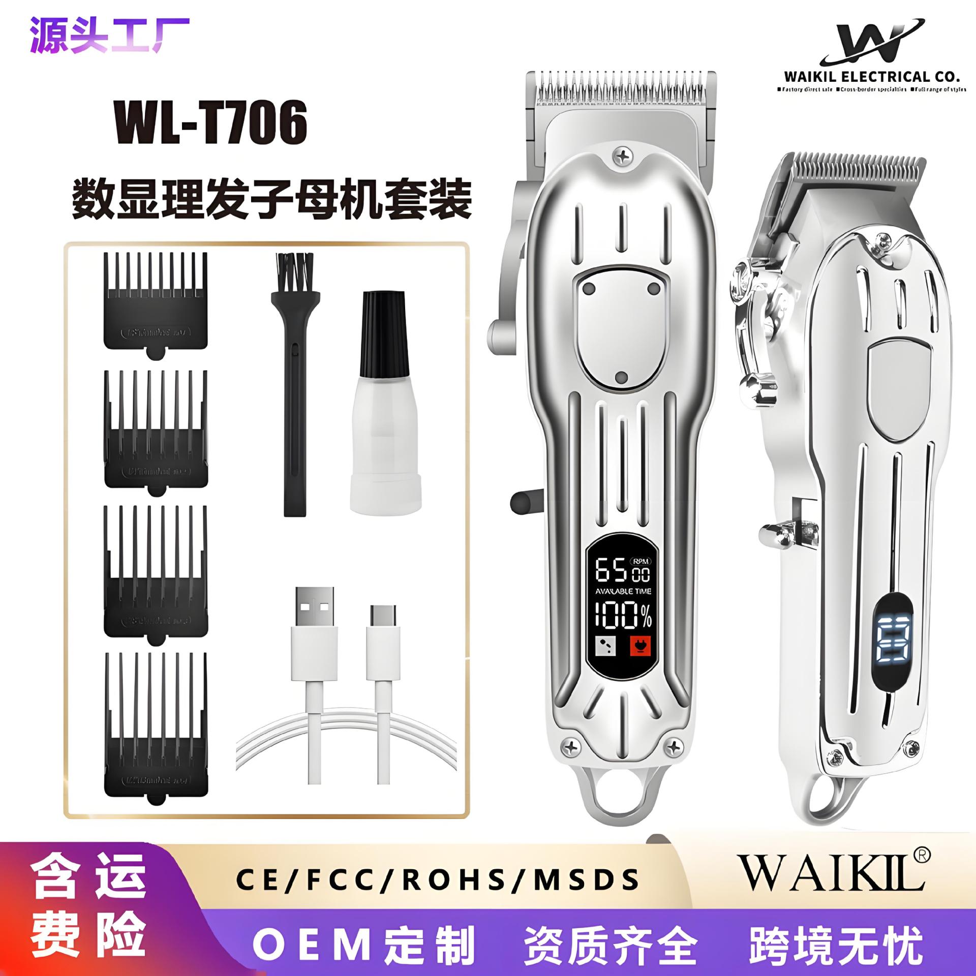 Cross-border pisau cukur rambut elektrik, gunting listrik kepala tekan ukir profesional tampilan digital, kepala minyak dapat diisi ulang