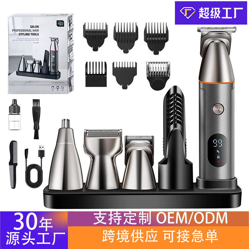 Cross-border grosir alat cukur rambut elektrik, setelan pencukur rambut tubuh tampilan digital kepala minyak pemangkas ukiran