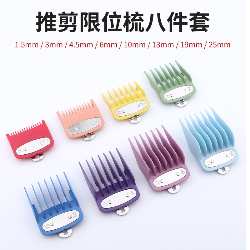 Lintas batas warna baru 8 potong sisir batas alat cukur aksesoris kepala minyak alat pemotong listrik posisi gigi sisir gesper besi
