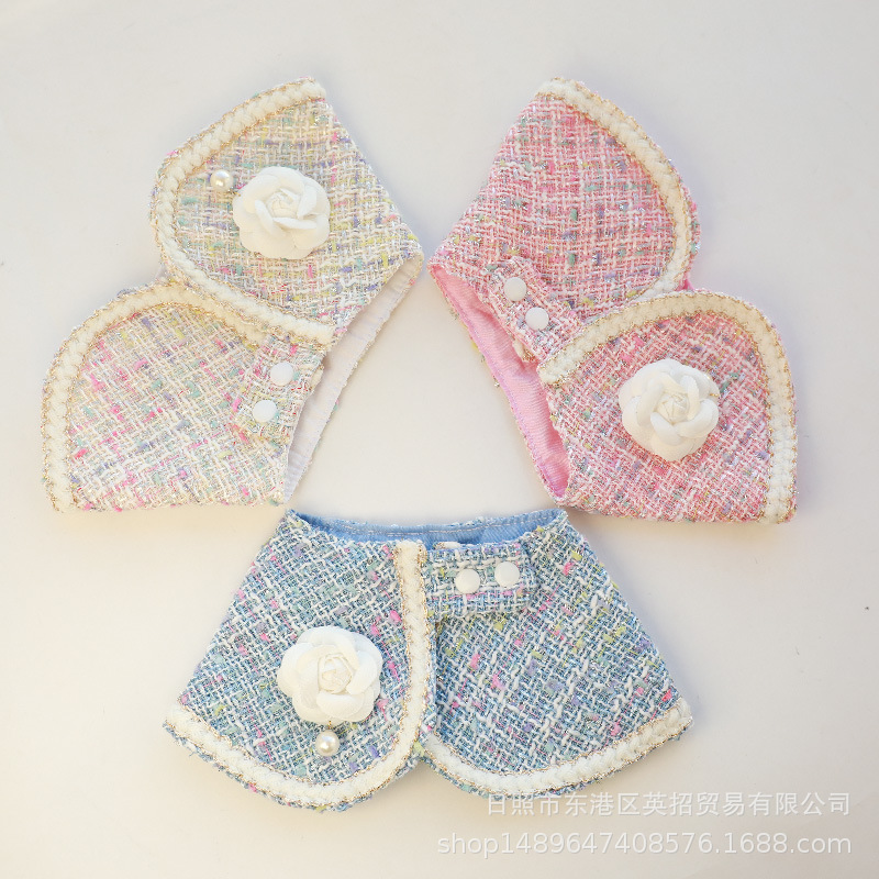 原创小香风猫咪可爱项圈围兜狗狗宠物围脖口水巾花朵珍珠围嘴围巾