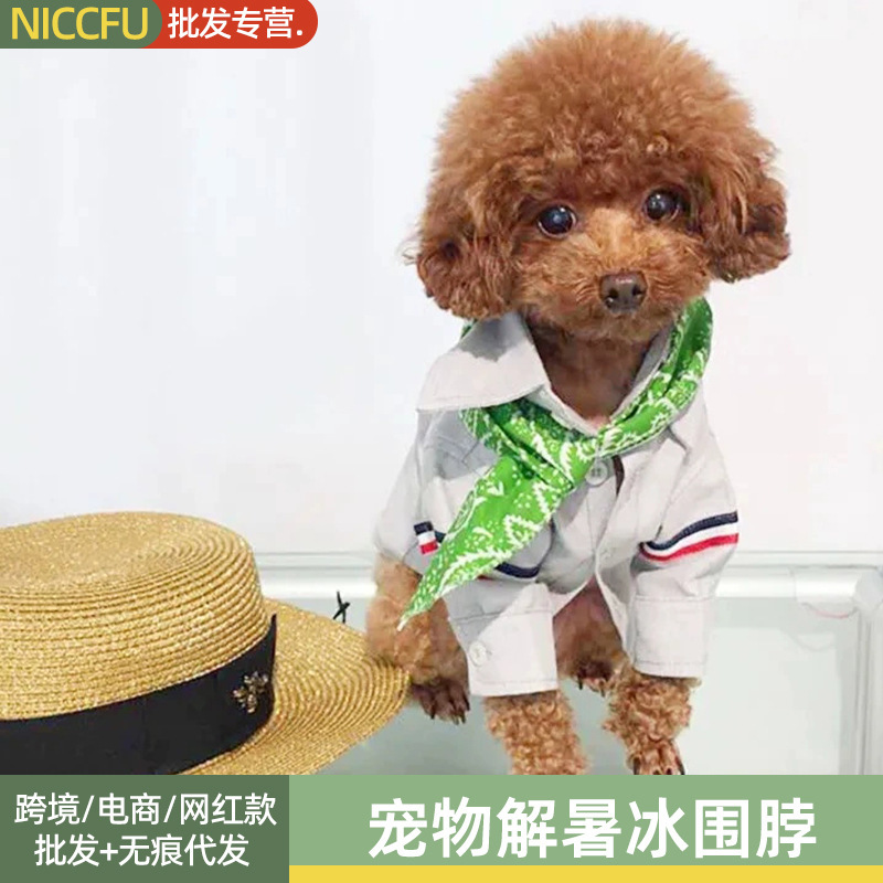 Syal es pendingin musim panas hewan peliharaan, handuk air liur pendingin anjing handuk segitiga kucing es syal luar ruangan kerah keren