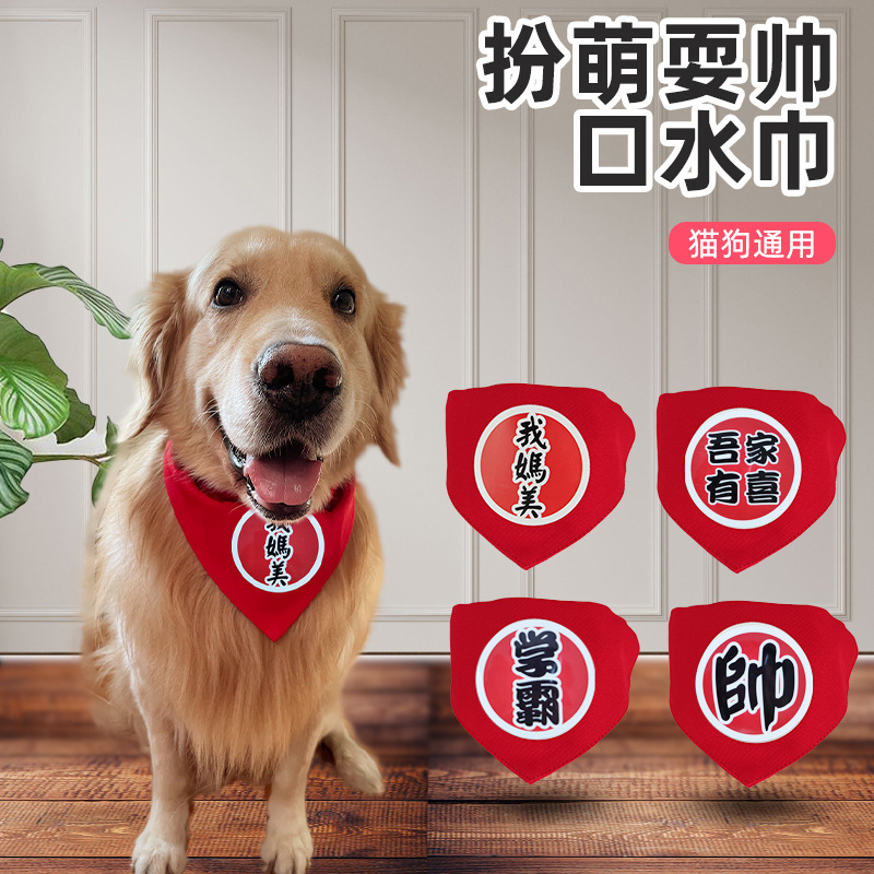 Warna Merah Karakter Kebahagiaan Ganda Handuk Air Mulut Anjing Kucing Pernikahan Syal Segitiga Hewan Peliharaan Syal Syal Anjing Besar Golden Retriever Grosir