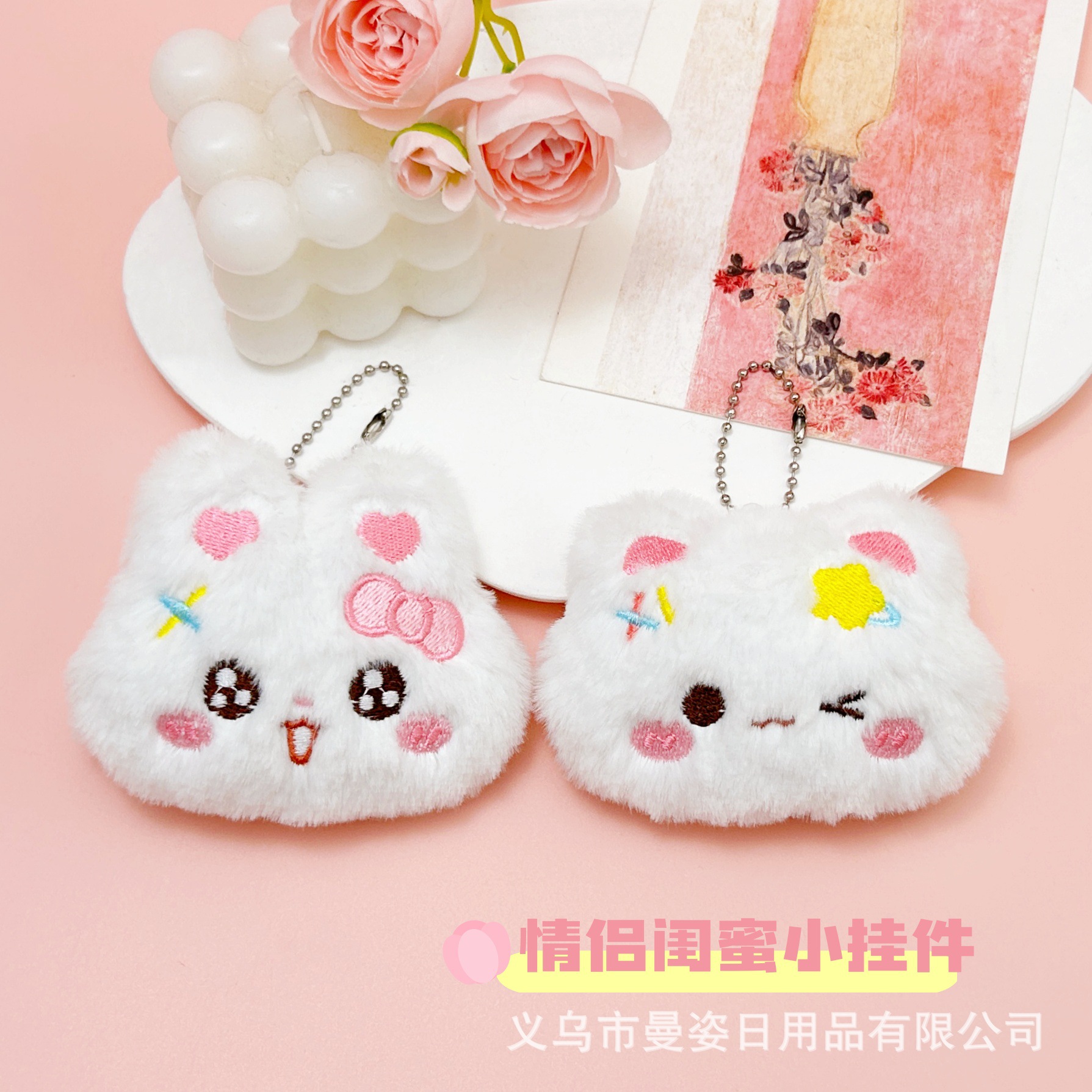 曼姿原创开心小兔吱吱叫毛绒挂件萌小猫胸针diy宠物包包服饰配饰