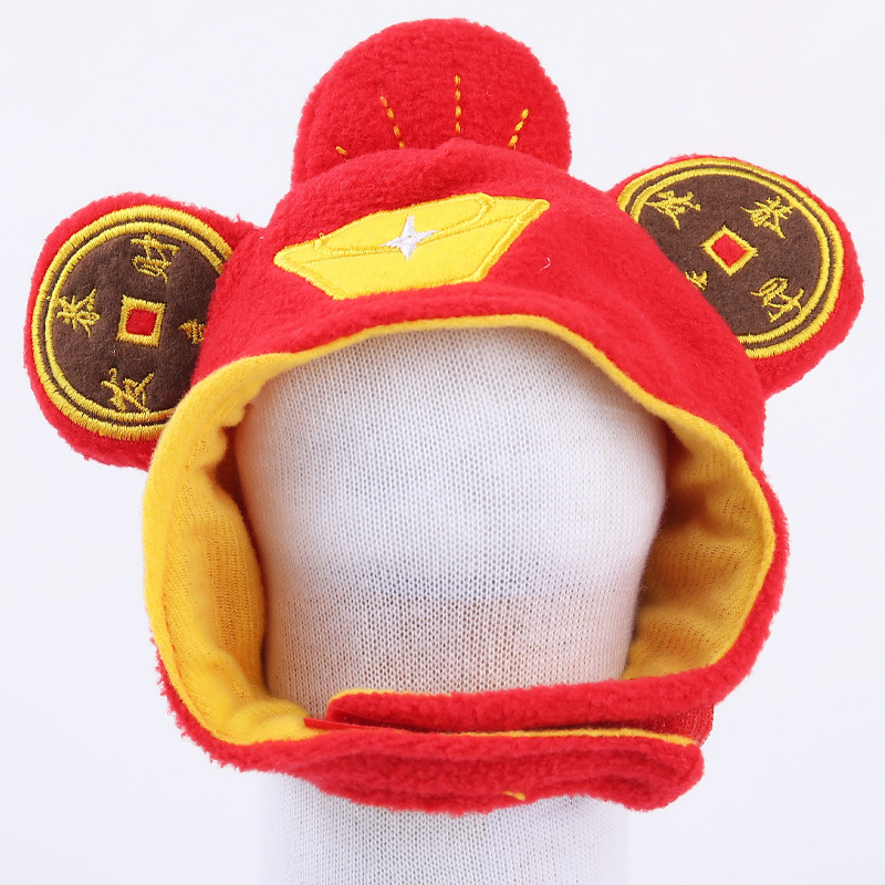 Topi kucing peliharaan Dewa Kekayaan Tahun Baru hiasan kepala meriah topi kostum anjing kecil lucu hangat musim dingin