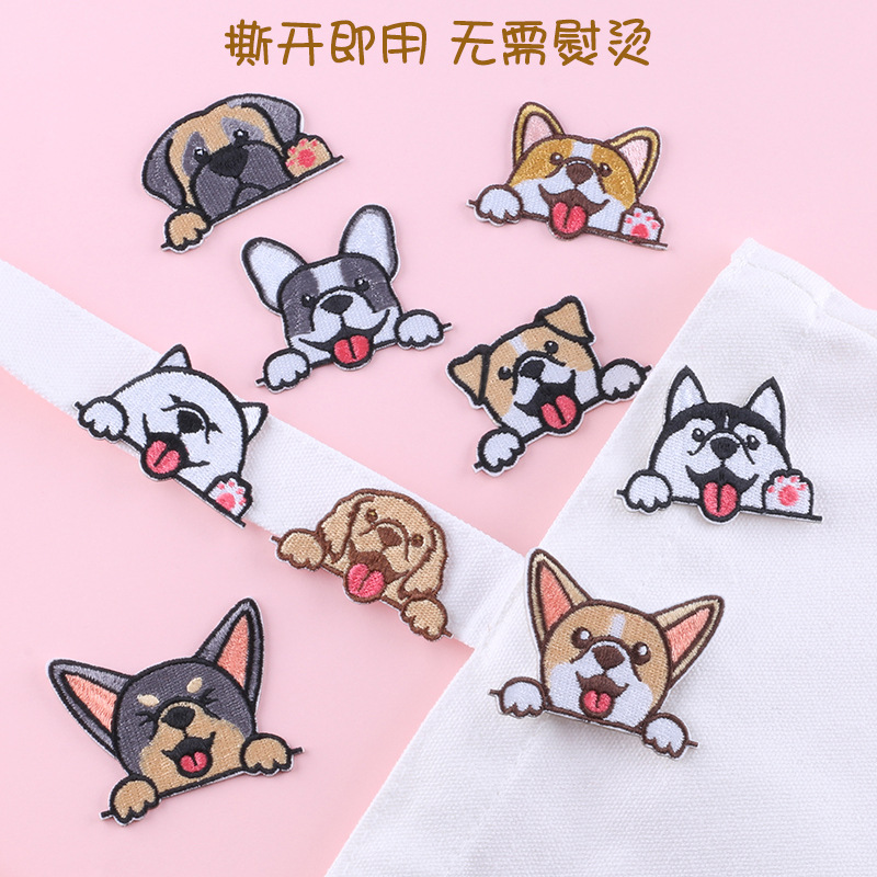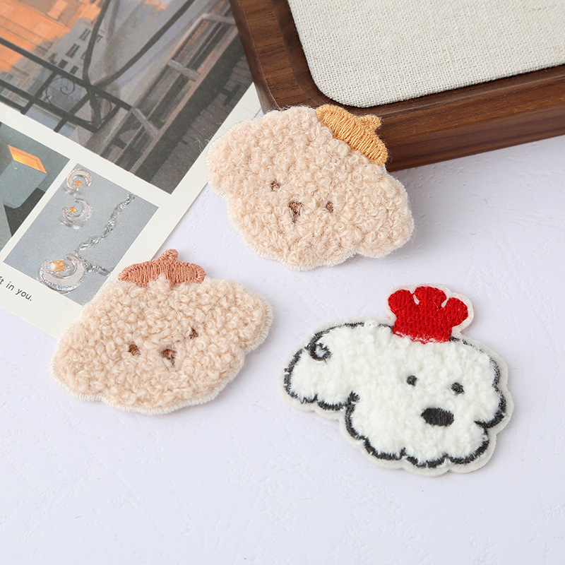 Stiker Bordir Anak Anjing Kartun Stiker Patch Model Tempelan Sendiri Model Beludru Hewan Lucu Aksesori Pakaian Anak-anak