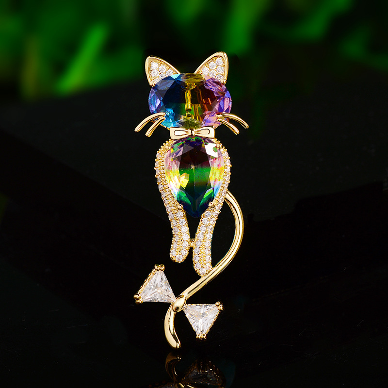 Bros Wanita Desain Unik Kristal Serbuk Niche Aksesoris Pin Kerah Kucing Model Baru 2024 Bros Peniti Jas