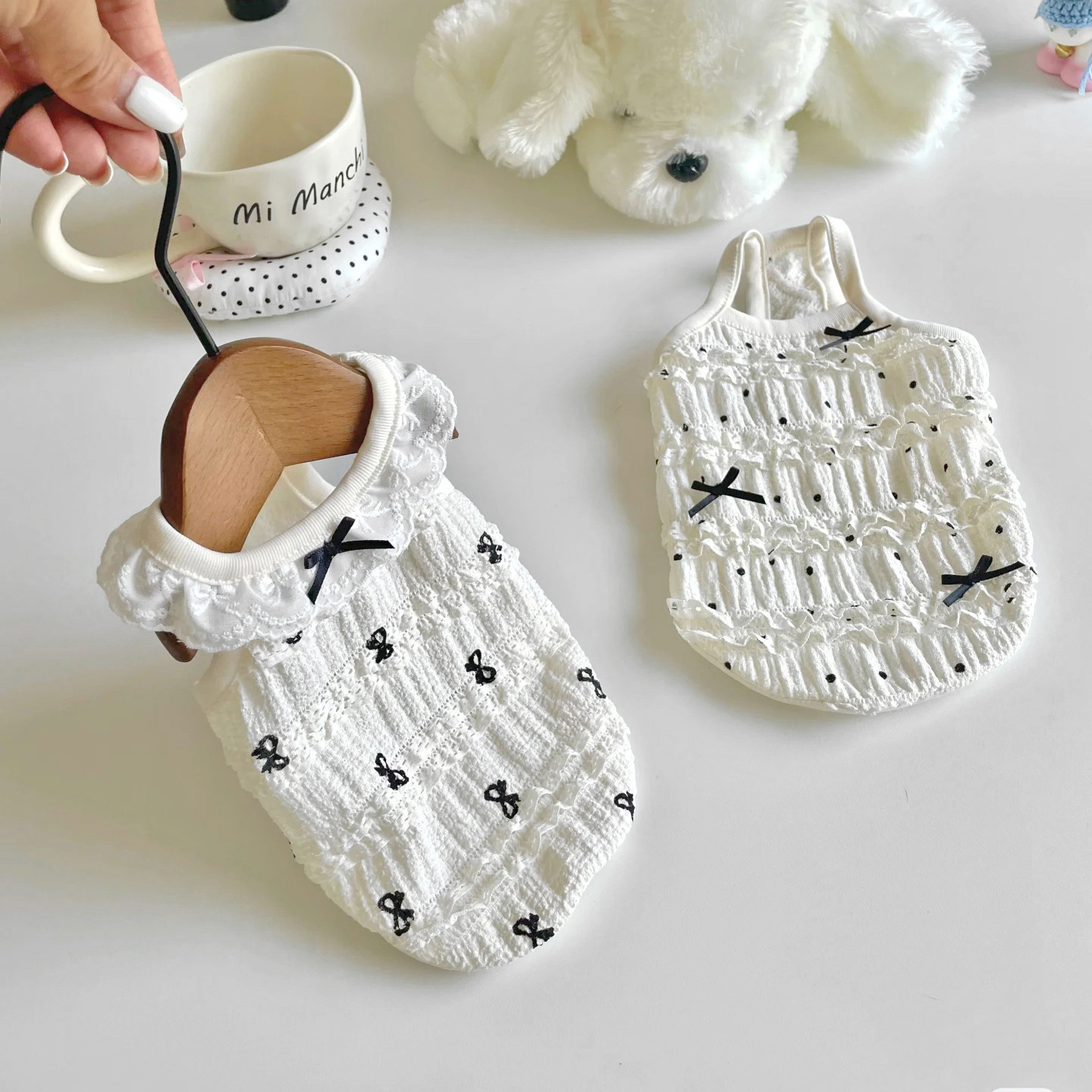 Pakaian Anjing Pita Kupu-Kupu Renda Retro Tank-top Kucing Hewan Peliharaan Pakaian Tipis Musim Semi dan Musim Panas Pakaian Anjing Kecil Bichon