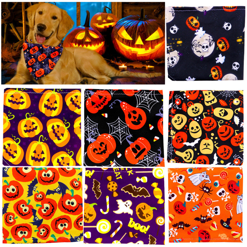 Handuk air liur Halloween, baju handuk segitiga anjing, handuk air liur kucing, perlengkapan hewan peliharaan grosir