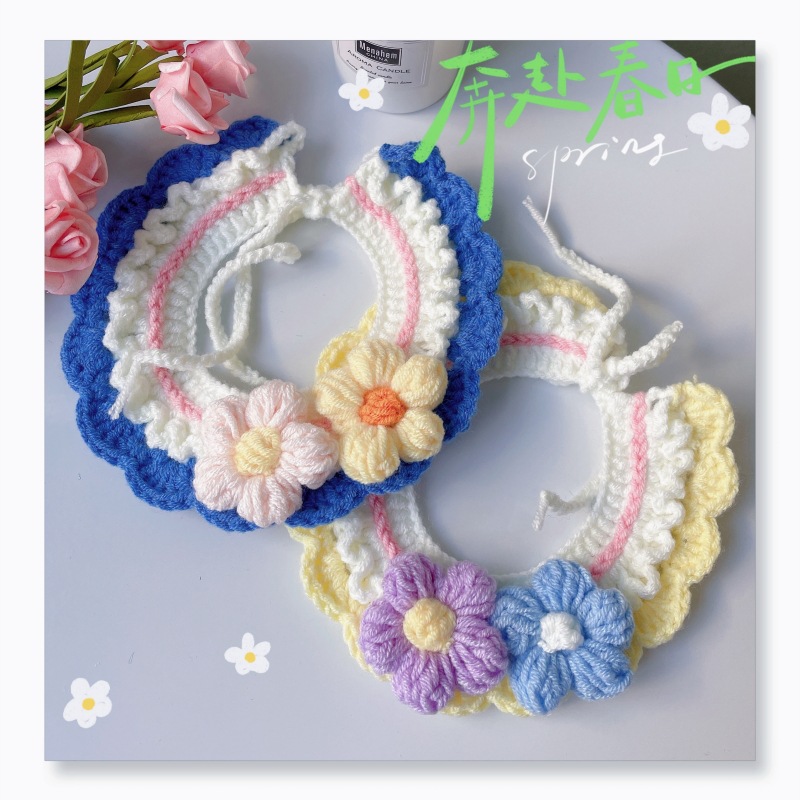 Bertemu musim semi hewan peliharaan bunga syal buatan tangan kerah wol kucing rajutan gulungan teddy bear aksesori pakaian