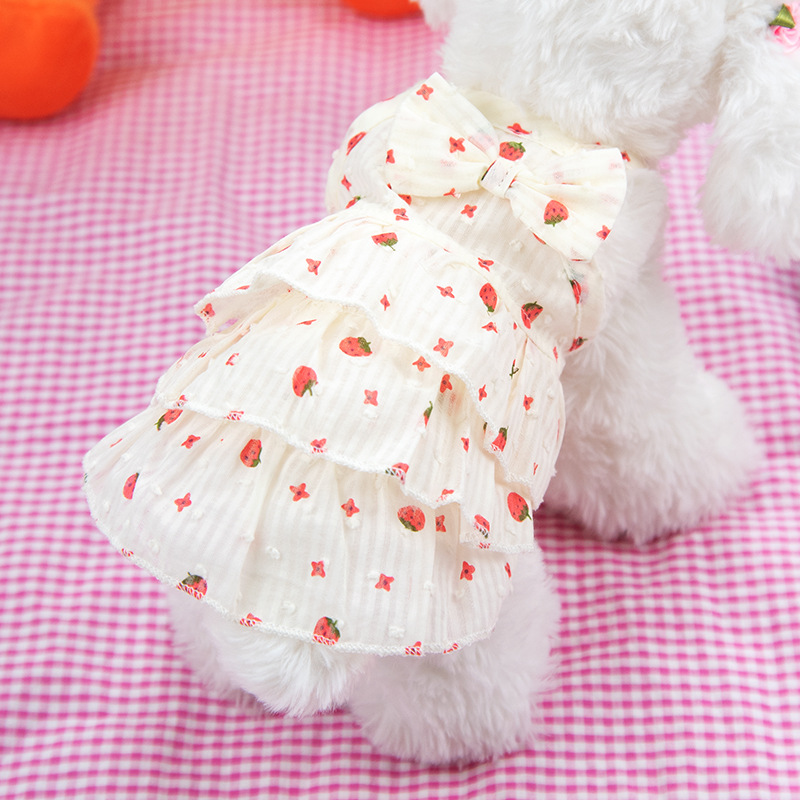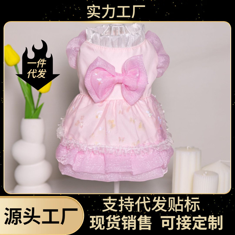 Pakaian Anjing Piaraan Lintas Batas Musim Semi dan Musim Panas Produk Baru Anjing Sedang dan Kecil Tembus Udara dan Nyaman Pita Kupu-Kupu Rok Berongga Baru