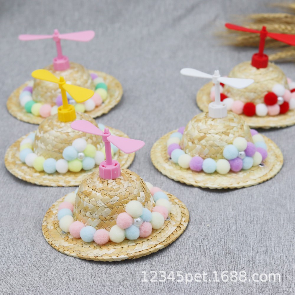 Topi rajut peliharaan selebriti Internet topi jerami capung bambu bola bulu kucing anjing alat peraga foto lucu