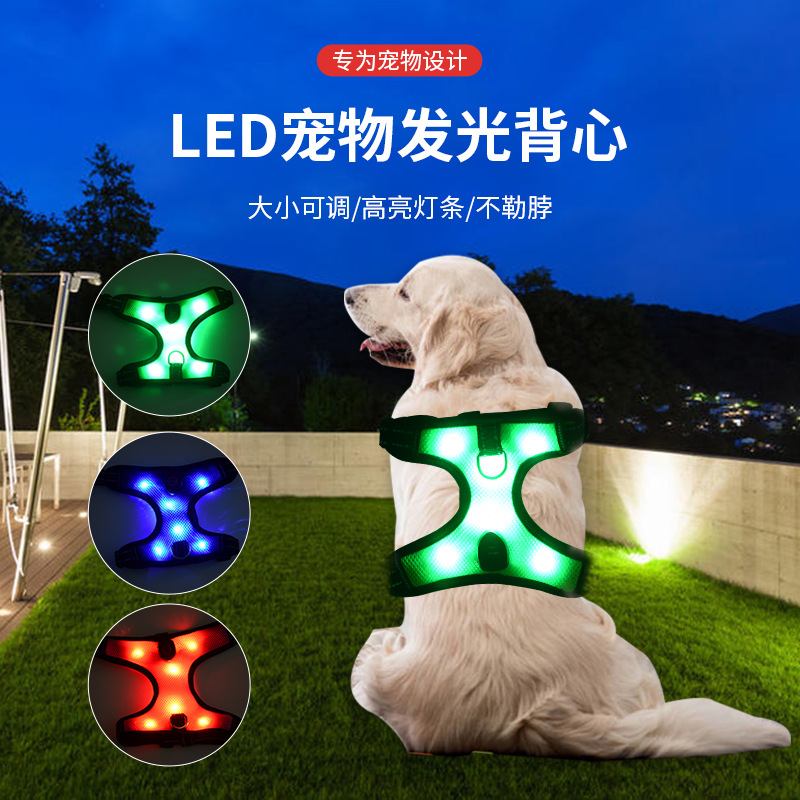 Persediaan hewan peliharaan LED tali dada bercahaya malam berlari anjing berjalan lampu peringatan pakaian anjing sedang dan besar kerah rompi flash