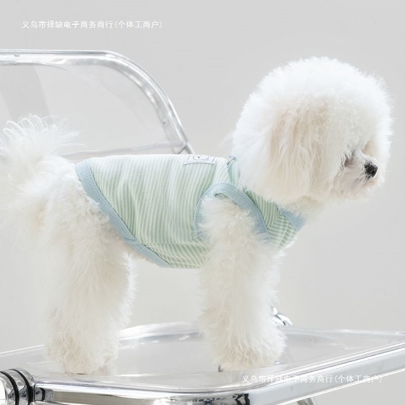 Tank-top Bergaris Anak Anjing Kecil Kecil Anak Anjing Bichon Pakaian Dua Kaki Musim Semi Musim Panas Boneka Kain Musim Panas Pakaian Hewan Peliharaan Bernapas