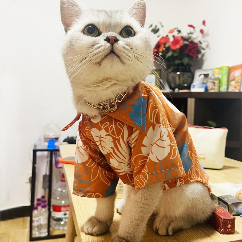 Pakaian Kucing Kemeja Pantai Dingin Musim Semi Musim Panas Kemeja Pelindung Terik Matahari Musim Panas Boneka Kucing Musim Panas Warna Biru Putih