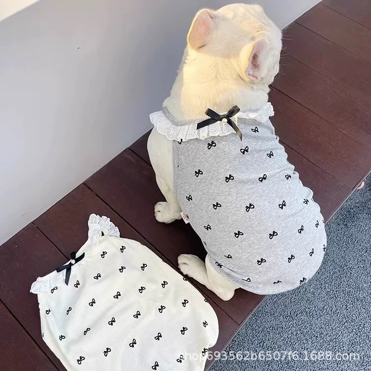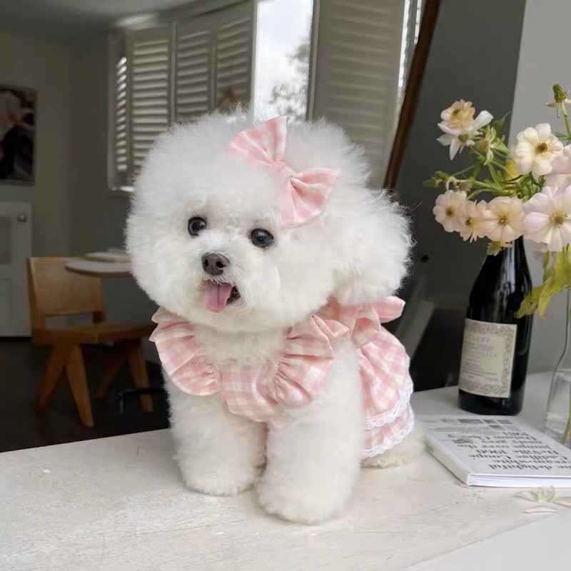 Pakaian Hewan Peliharaan Musim Semi dan Musim Panas Model Baru Kotak-Kotak Lengan Traksi Gesper Pita Kupu-Kupu Rok Teddy Bichon Pakaian Kucing Anjing