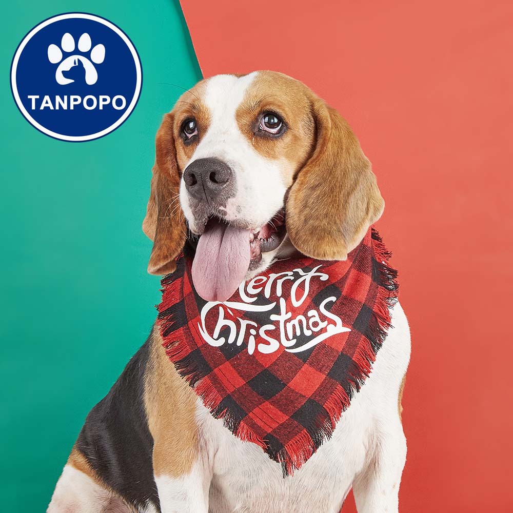 Tanpopo baru lintas batas handuk segitiga rumbai kotak-kotak hewan peliharaan handuk segitiga Natal hewan peliharaan syal handuk air liur