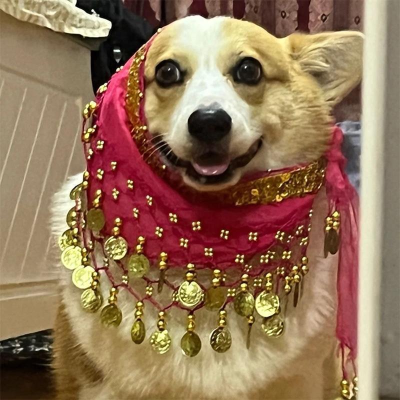 Rok Khusus Corgi Pakaian Benang Tipis Anjing Bergoyang Pantat Menari Rantai Pinggang Rok Tari Perut Dekorasi Lucu Hewan Peliharaan