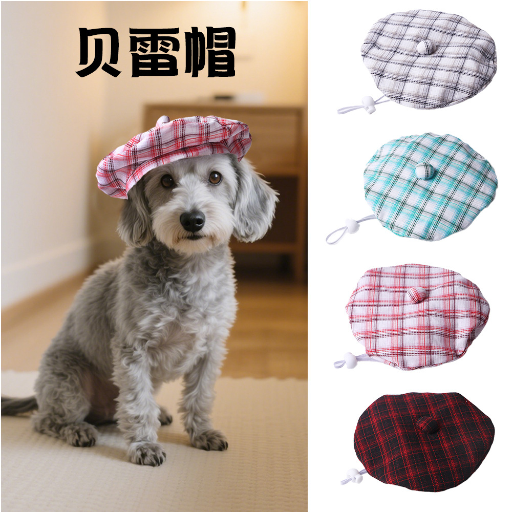 Topi Baret Hewan Peliharaan Model Baru Topi Foto Kucing Lucu Model Kotak-kotak Topi Baret Anjing Hiasan Kepala Hewan Peliharaan