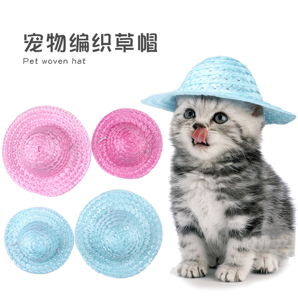 T cross-border topi jerami hewan peliharaan baru topi anjing kucing dapat disesuaikan bando topi matahari Teddy produsen stok